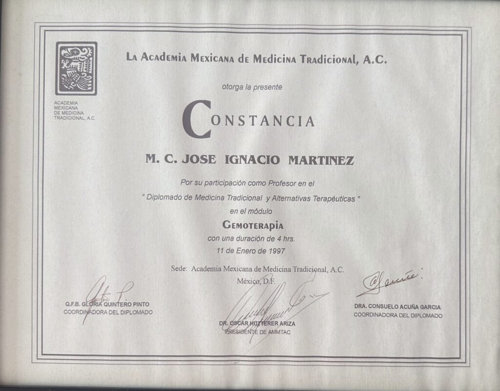 Constancia de “Diplomado de Medicina Tradicional y Alternativas Terapéuticas” en 1997